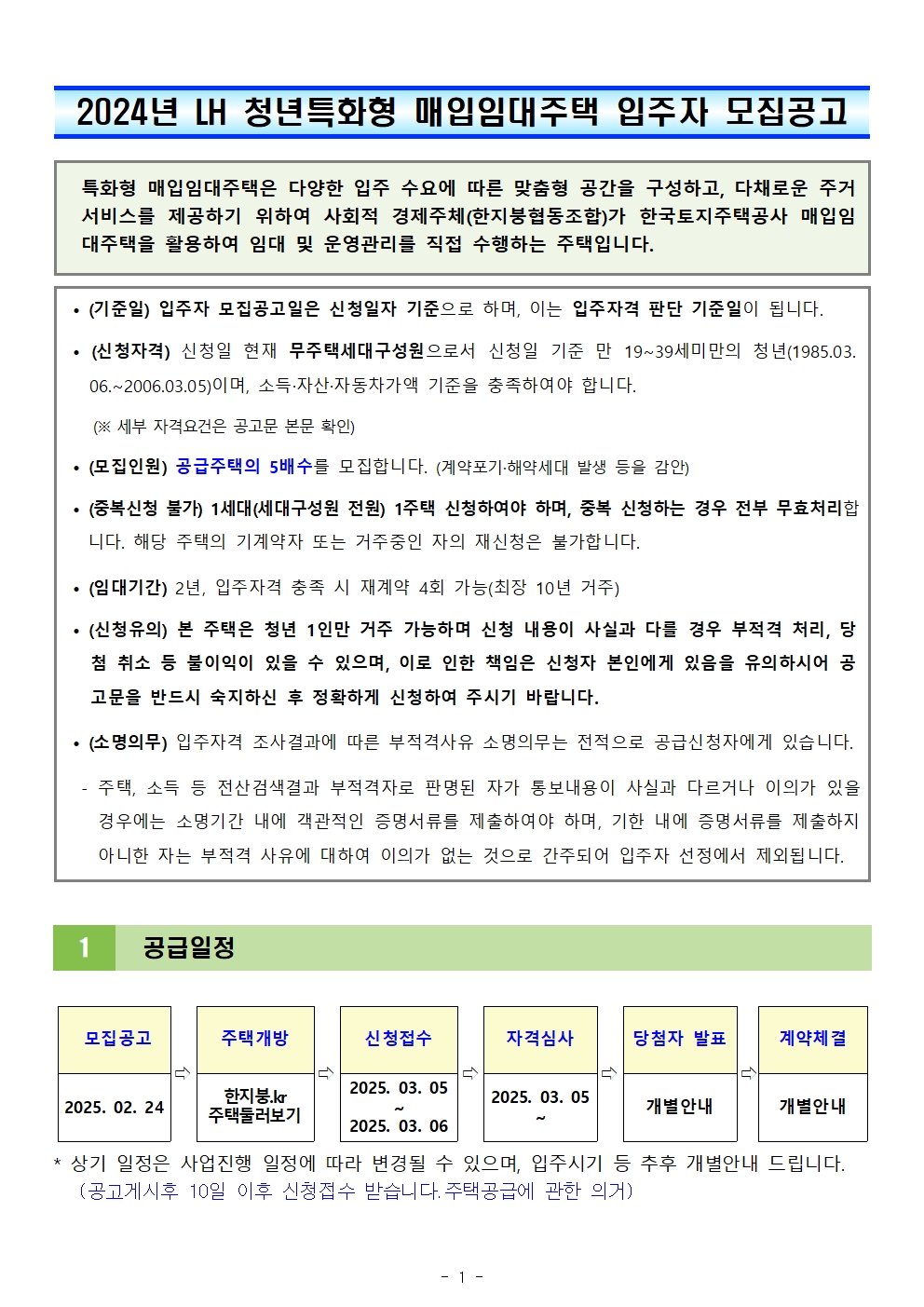 - 신청대상: 입주자 모집신청일 (2025년 3월 5일) 현재 미혼인 청년